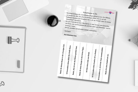 In unserer Toolbox findest du kostenfreie Skills, Übungen und Methoden für die Gestaltung deiner Zusammenarbeit im Team, zur Optimierung deines eigenen Stressmanagements, für wertschätzendes und erfrischendes Feedback und viele weitere. Von uns getestet und entworfen, erhälst du so ein Stück Schlachtplan zum Mitnehmen. Viel Erfolg und Spaß damit!